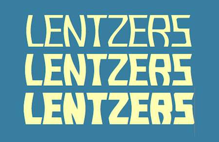 The upper-case letters of Lentzers fit into the shape of a convex lens and the lower-case letters fit into the shape of a concave lens. The typeface was designed to have concave shapes alternate with convex shapes so the letters snuggle together and the OpenType contextual alternatives (calt) feature will automatically make this happen if your word processor supports it. (To get only concave or convex shapes, one must turn off the contextual alternatives feature.)
