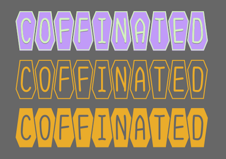Coffinated features letters on coffins. It is monospaced and its two styles can be used in layers for added color. The letters placed on the coffins were specifically designed for this font family.