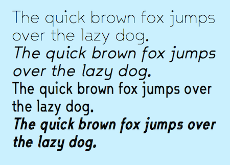 JetJane is a geometric sans faces that is plain, unadorned, and highly legible. The family has two widths and each width has nine weights. Each of these 18 fonts comes with an accompanying italics version, giving the family a total of 36 members. It is derived from JetJaneMono, a monospaced sans-serif face.