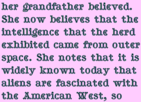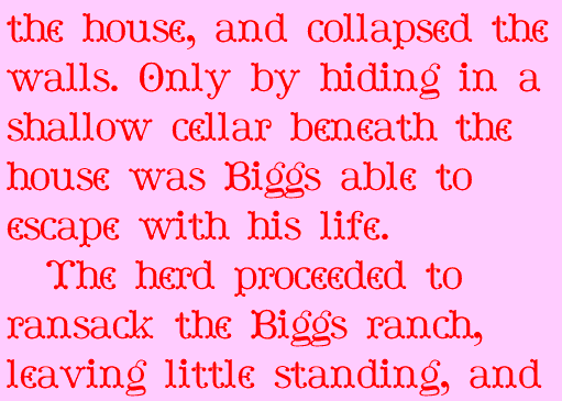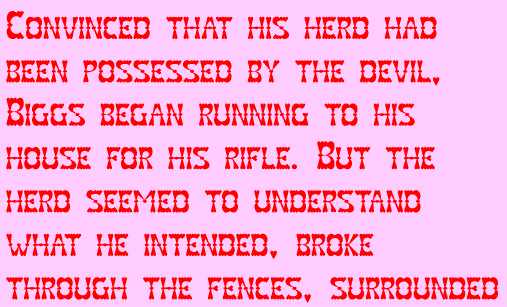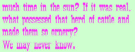 Finally to the end. I hope you enjoyed the story. If you know more about the Great Bovine Rebellion of 1896 than is told in the above story, I would like to hear from you. I think this may be a very important part of American history and no details of it should be lost.