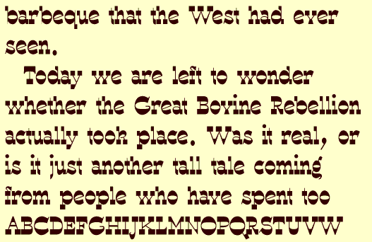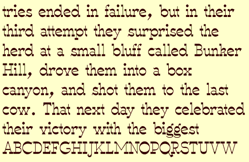 By now you may be wondering when I am going to run out of "Old-West" fonts. Actually, I have to stretch a bit, as the following example illustrates.