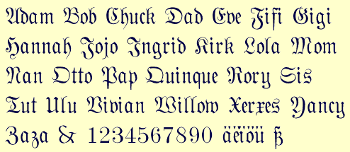 AlbertBetenbuch, above, was inspired by calligraphy from Albert Duerer. It also makes very pretty certificates.