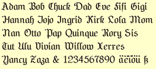 Fraktur always had variations, and this is one attempt at a variation inspired by a typeface from the nineteenth century. It comes in both plain and bold, and the above is the bold version. Below you will see a decorated version, with a line shadow.