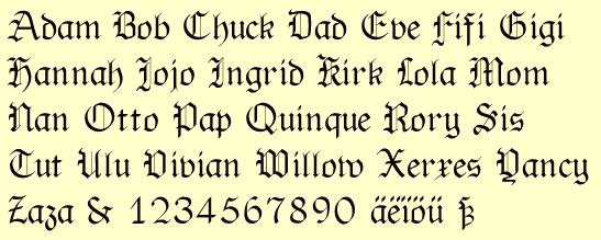 The old Medieval style fonts are a calligraphic style that is today largely used for awards and certificates. It is too bad in a way because some of the type is very beautiful. Here are a number of examples of Medieval-styled fonts, with not much of a story to go with them. In fact there is no story at all, just a bunch of names and numbers.