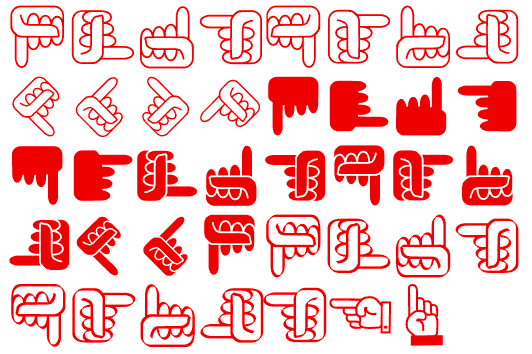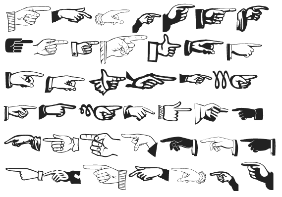 These fingers come from a variety of sources--old paintings, nineteenth-century publications (when they liked to put in pointing fingers), and an overactive imagination.