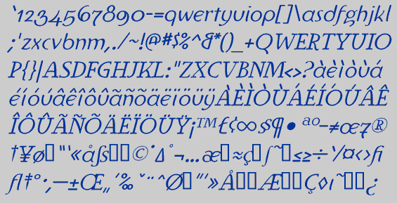 Ingriana is an informal, serifed typeface which is highly readable at small point sizes. I personally consider this one of my best designs. I think it fills a niche that the computer-printing revolution has created. There are documents for which a typeface such as Times is too formal. A typeface such as Ingriana works well in this situation.