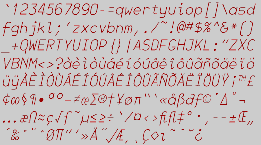 JetJaneMono is a very large family of sans-serif faces which are mono-spaced, as are typefaces used in typewriters and cheap computer printers. There are three weights in the extended family: Thin, Plain, and Bold. In addition there is an italics version in the same weights which is close to the "book" version, with some differences in lower-case letters and symbols. Finally, there is an all-caps version in which the lower-case letters have been replaced with scaled versions of the upper-case letters.
