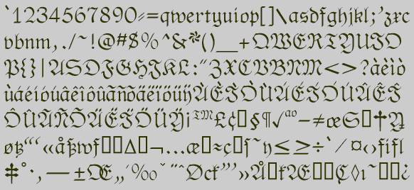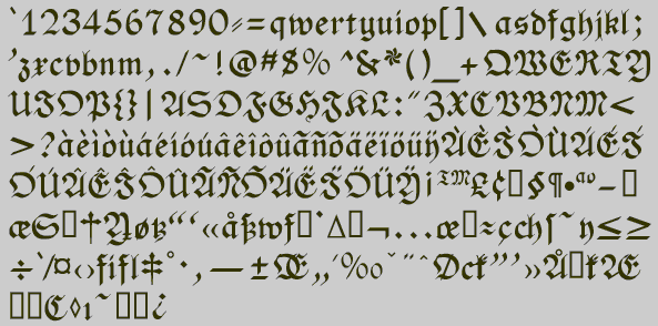 Fraktur is hardly used at all today, and in Germany it is used only for decorative purposes. This is unfortunate, because it is a beautiful type style. The No-Hype Type CD has an unusually rich collection of fonts based on the Fraktur style.